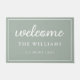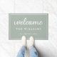 Felpudo Nombre de familia verde de bienvenida personalizad