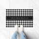 Rústico Blanco Y Negro Placa Gingham Nombre Doormat.