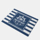 Su nombre de barco personalizado o su apellido con un ancla náutico Personalizado, orejas, ruedas de barco y estrellas en un felpudo de bienvenida.