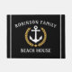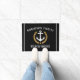 Personalice su decoración en casa con un elegante portero que incluye su nombre familiar, casa de playa, casa de lago, cabaña u otro texto deseado. Esta alfombra de bienvenida cuenta con un ancla de barco diseñado por un personalizado con hojas de laurel de estilo dorado y emblema estrella con rayas sobre un fondo negro o ajustar fácilmente el color primario para que coincida con el tema actual.