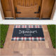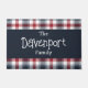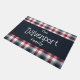 El moderno doormat blanco y azul tartán, con el nombre de la familia personalizable, se complementa con la decoración de su casa de campo. Los tonos rojos y azules profundos harán que la entrada sea acogedora y cálida.