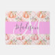 Doormat monocromático de moda con calabazas de color rosa y melocotón floral primavera / otoño y fondo blanco y rosa. Su nombre y monograma personalizados están escritos en un elegante guión gris y blanco con letras a mano con un fondo rosado. Puede cambiar el color del texto y el estilo y el tamaño del tipo de letra mediante la opción personalizar.