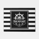 Su nombre de barco personalizado o su apellido con un ancla náutico Personalizado, orejas, ruedas de barco y estrellas en un felpudo de bienvenida.