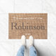 Elegante nombre de casa de campo marrón de campo burlap felina de texto. Un hermoso color coincidente en marrón, monograma familia doormat.