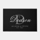 El moderno Doormat de nombre familiar establecido en blanco y negro está diseñado con fondo negro personalizable y monograma gris claro inicial en el centro. Personalizado con el apellido en la escritura de caligrafía blanca elegante. El año establecido es en números blancos. Su nombre y el de ella están en el centro inferior. Hace un gran regalo de bienvenida o de ducha de novia. HAGA CLIC EN PERSONALIZAR LA OPCIÓN PLANTILLA Y SIGA LOS PROMPIMENTOS