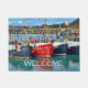Personalice el mensaje de "bienvenida" o el nombre en blanco en la foto de los barcos pesqueros en el puerto. Este sencillo diseño hace un gran regalo.