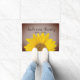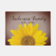 Fotografía de primer plano de un girasol amarillo brillante con un nombre familiar personalizado y un año de establecimiento de fondo gris y marrón oscuro. Personalizar editando el apellido y el año.