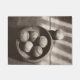 "Nostalgia de béisbol II" por Judy B. Messer. Cuenta con una fotografía sepia de varias pelotas de béisbol.