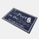 Doormat azul marino náutico con la frase "Nuestro puerto en la tormenta" en letras blancas incluyendo tu apellido personalizado. Consiga la elegancia costera clásica con este gran felpudo náutico.