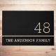 Doormat con el nombre de su familia y el número de su casa en un fondo negro, de color marrón claro y neutro. Todos los colores son personalizable con la herramienta de diseño.