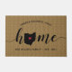 Mostrar algo de orgullo de estado de casa con este felpudo personalizado que presenta "hogar" en letras de caligrafía con un mapa de silueta del estado de Ohio parado en la letra "O". Un ilustracion cardíaco dentro del mapa de estado completa el diseño; puedes cambiar la posición del corazón a tu ciudad natal abriendo la herramienta de diseño y arrastrando la forma del corazón a tu sitio favorito. Personalice con su ciudad natal, su nombre familiar y el año establecido para crear un toque final perfecto para su puerta principal, o un regalo inolvidable para su hogar.