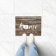 Muestra algo de orgullo en el estado de casa con este adorable felpudo rústico de madera pintada con letras "home" en letras de caligrafía blanca con un mapa de silueta del estado de Oklahoma representando la letra "O". Un ilustracion de corazón rosa dentro del mapa de estado completa el diseño; puedes cambiar la posición del corazón a tu ciudad natal abriendo la herramienta de diseño y arrastrando la forma del corazón a tu lugar favorito. Personalice con su ciudad natal, su nombre familiar y el año establecido para crear un toque final perfecto para su puerta principal, o un regalo inolvidable para su hogar.