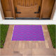 Este felpudo tiene un diseño boho de olas violetas y turquesas en un campo de violeta claro.