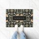 Wanting a cute orange theme for your home decor? Enhance your entrance by adding the Orange Blossoms Family Black Doormat. Personalize it with your family's name or other text. The pattern has a muted color palette. The green and orange provide a soft appearance against the black background. The leaves, flowers, and oranges are outlined in a khaki shade.