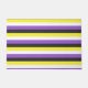 La bandera no binaria fue creada en 2014 por el activista Kye Rowan. Cada color de franja representa diferentes tipos de identidades no binarias: amarillo para las personas que se identifican fuera del binario de género, blanco para las personas no binarias con múltiples géneros, morado para las que tienen una mezcla de géneros masculinos y femeninos, y negro para las personas de edad.