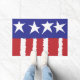 Una divertida y divertida celebración de los Estados Unidos con una línea de estrellas dibujadas a mano en un brillante campo azul con rayas rojas y blancas abajo.