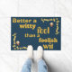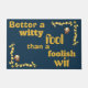 Bienvenido a nuestros huéspedes con un toque de elegancia y sabiduría utilizando nuestra estera de puertas "Gold on Blue". Con la cita atemporal 'Mejor un tonto ingenioso que un ingenio tonto' en lujoso oro con un sofisticado fondo azul, esta alfombra duradera añade estilo y sustancia a tu puerta. Que sirva como un recordatorio diario de entrar con ingenio y dejar la locura atrás.