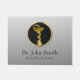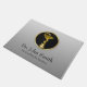 Diseño profesional elegante de negocios para fines médicos: preciosa serpiente de oro Caduceus y tazón Hygieia sobre una insignia negra redonda con fondo gris claro. Perfecto para cualquier negocio relacionado con la salud como un consultorio médico, médica, clínica u hospital. Para el personal hospitalario, médicos, enfermeras; elegante, noble y elegante.
