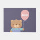 Un lindo oso de peluche en los vestíbulos de denim se aferra a un globo rosa. Personalice con el nombre del niño para convertirlo en una adorable pieza decorativa para el dormitorio infantil o la guardería infantil.