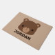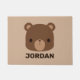 Este diseño presenta un lindo oso marrón con nombre personalizado en sans modernos marrones estilo serif tipo de letra sobre fondo marrón claro.