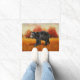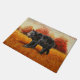 Un osito negro adorable dando un paseo por un campo de follaje de colores vivos de otoño.