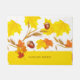 Diseño bonito y elegante con hojas de otoño en colores amarillo naranja y dorado, paja de trigo y patrón de bellotas, y fondo amarillo dorado con una línea mágica de otoño completamente personalizable. ¡Tengan un otoño dorado y mágico!