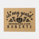 Doormat clásico y elegante para la caída - "oh texto de mi calabaza" con una calabaza, las vides, las hojas, y su apellido