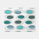 Un diseño de arte pop inspirado en la era atómica, con tonos turquesa y verde azulado sobre ovarios y garabatos. Para cualquiera que ame el arte de la era espacial del siglo XX.