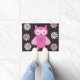 Ilustracion de búho rosa y dulce con flores rosadas claras. Idea de regalo perfecta para los amantes de las lechuzas.