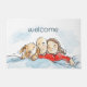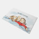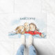 Este felpudo tiene el ilustracion de un adorable cachorro y sus padres, un calvo y una morena. Puede personalizar del texto.