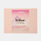 El Doormat de bienvenida con un ilustracion encantador. Colores pasteles de rosa y melocotón. Paisaje con planetas, montañas y nubes.
