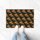 Añada un toque de encanto a una entrada con este felpudo decorativo de 24" x 36" que muestra la imagen de una flor naranja de una planta tropical de pájaro del paraíso impresa en un diseño repetitivo sobre un fondo negro. También se le conoce como flor de grúa.