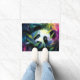 Panda de acuarela adorable asomando hojas de bambú exuberantes.
