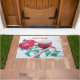 Un portero de bienvenida con una cálida foto reconfortante de Navidades. Una taza caliente de cacao con malvaviscos en una taza de puntos polka rojo y blanco. Un bastón de caramelo a rayas descansando sobre una bufanda rayada verde y blanca cubierta de nieve. Ahhh, una bebida caliente después de venir del frío realmente golpea el lugar. Una foto festiva.