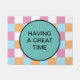 Guay, azul, blanco naranja y color rosa patrón de tablero de ajedrez y una plantilla de texto. Para editar, haga clic en personalizar y cambie las palabras.