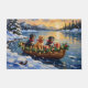 Bring delicate, butterfly-eared charm to your holiday season with this adorable Papillon Christmas design! This magical scene features three cute, elegant Papillons (with their distinctive fringed ears) sitting sweetly in a cozy wooden boat, gently floating on a serene snowy lake at sunset. The boat is beautifully adorned with glowing Christmas string lights and fragrant pine garlands, while the dogs wear festive scarves. They are surrounded by colorful wrapped presents and cheerful holly branches. Soft snowflakes gently fall, and the shimmering reflection of the lights on the water creates a truly magical winter holiday atmosphere. This design is a perfect Christmas gift for any Papillon owner, dog lover, or admirer of festive and beloved toy dog art, capturing the serene joy of the season.
