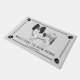 El original ilustracion personalizado de Destei de un perro de raza Papillon de color negro y blanco sobre un fondo gris claro. El diseño está enmarcado por elegantes líneas de doble borde. También hay una silueta de papel de perro en cada esquina. Bajo la imagen hay dos áreas de texto personalizables. Los colores de las huellas de la pata, el borde, el texto y el fondo pueden cambiarse a cualquier otro color, si así lo desea.