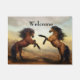 Un par de caballos salvajes criando con montañas en el fondo. 100% Personalización. Haga clic en el botón PERSONALIZAR para agregar, mover, eliminar, cambiar el tamaño o cambiar cualquiera de los tipos de letra o gráficos.