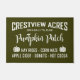 "CRESTVIEW ACRES PUMPKIN PATCH" - Este diseño artístico de otoño fresco, divertido y festivo está adornado con un murciélago de Halloween y un par de calabazas flanqueando los costados. Hemos puesto esto en todo, desde almohadas de tiro y mantas, hasta esteras de bienvenida y rompecabezas, y mucho más. Muéstralo cada otoño por ese toque especial de capricho o déjalo afuera todo el año en tu casa con temática de casa de campo o de campo.