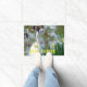 Pato Blanco en Daffodils Bienvenido Doormat Amigable de los adobos de pato blanco en el borde del agua con los bonitos. Un día perfecto junto al lago. El sol brilla en el agua y calienta los patos hacia atrás. Lugar alegre, feliz y relajante. Agradable por la puerta principal o como regalo para el ama de casa.