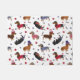Dachshunds patrióticos vestidos de blanco y azul rojo con estrellas, rayas y huesos de perro sobre un fondo blanco.