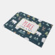 Una alfombra de puerta con un capricho festivo. Osos polares, renos, árboles, zorros y copos de nieve. En un fondo verde oscuro. Un marco rectangular con un falso borde de Relieve metalizado dorado con paz amor y alegría, escrito dentro.