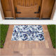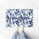 Esta divertida alfombra de puertas con temática de voleibol presenta un patrón de variado tamaño de la marina, de bolas de voleibol azul claro y blanco a diferentes profundidades sobre un acento de detalle de red - personalizado con su nombre - se puede personalizar el color del fondo blanco - por katz_d_zynes