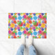 El círculo colorido se solapa con un patrón sin fisuras. ¡Un motivo alegre y vibrante para hacer su felpudo de felpa!