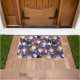 Fantasía patriótica vestida de rojo, blanco y azul con estrellas y rayas con fondo de estrella y hueso de perro.