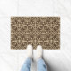 Doormat en un patrón de medallón damasco con una textura estriada tejida Ikat - marrón chocolate profundo sobre un fondo de camello marrón claro