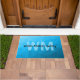 Felpudo Patrón de malla geométrica de gradiente cian azul