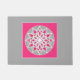 Doormat en un patrón de mandala de doce puntos en tonos rosa fucsia, blanco y gris suave, con fondo gris / gris