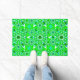 Doormat en un patrón de mandala de doce puntos en tonos de esmeralda profunda a verde menta pálido con acentos pavo real, azul turquesa y blanco