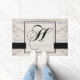 Patrón de aspecto de mármol con monograma negro H elegante estera de puerta con texto personalizado La familia Henderson
